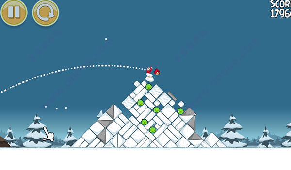 2、鸟儿的弹出角度和力度由你的手指来控制,要注意考虑好力度和角度的综合计算,这样才能更准确的砸到肥猪。