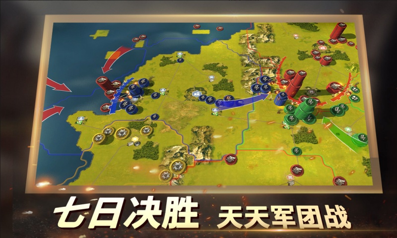 2、每个战场最长7天决出胜负,多种玩法地图可供选择。公平开局,按战绩匹配。开局即战,告别漫长的升级攒兵。战败也可随时开局,自由安排游戏时间,无需永久守候。