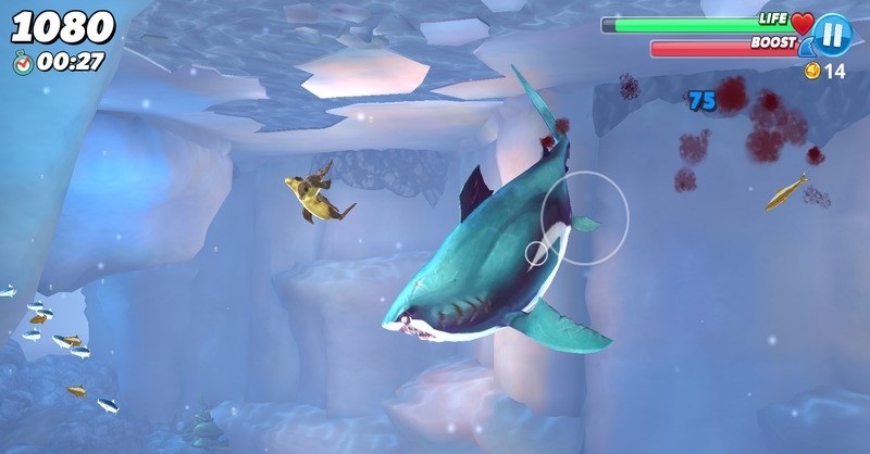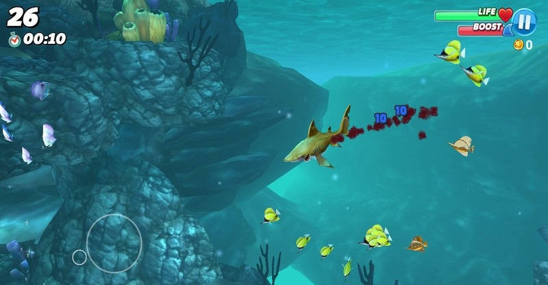 5.挑战更高的分数,当然作为鲨鱼你也可能会遇到一些危险。