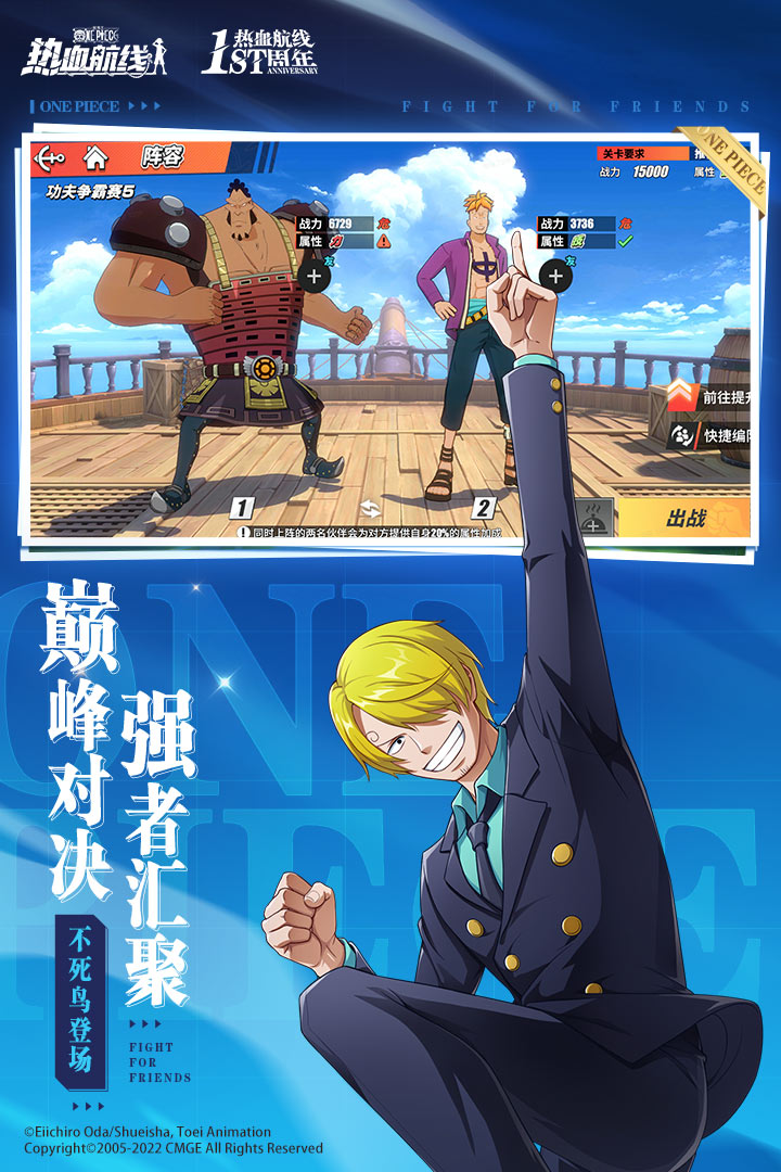 航海王热血航线破解版最新版是一款由朝夕光年发行的漫改冒险手游,玩家将会置身于一个海贼盛行的世界,在这里,召集伙伴一起展开全新的成王之旅,在航海王热血航线破解版最新版中,玩家可以通过提升角色等级,在战斗中搭配阵容来获取胜利,得到相应奖励。喜欢航海王热血航线破解版最新版的玩家快来下载吧!