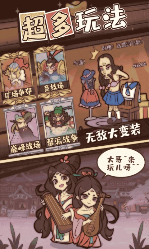 所有的人物都取自三国英雄,Q版诙谐的画风,人物特性的放大,现代与古代的结合,让你一边玩游戏,一边看漫画!