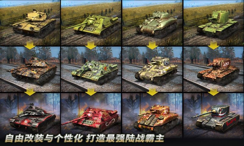 3·各种酷炫的坦克装甲等你体验,每一个都有其独特的战斗快感。