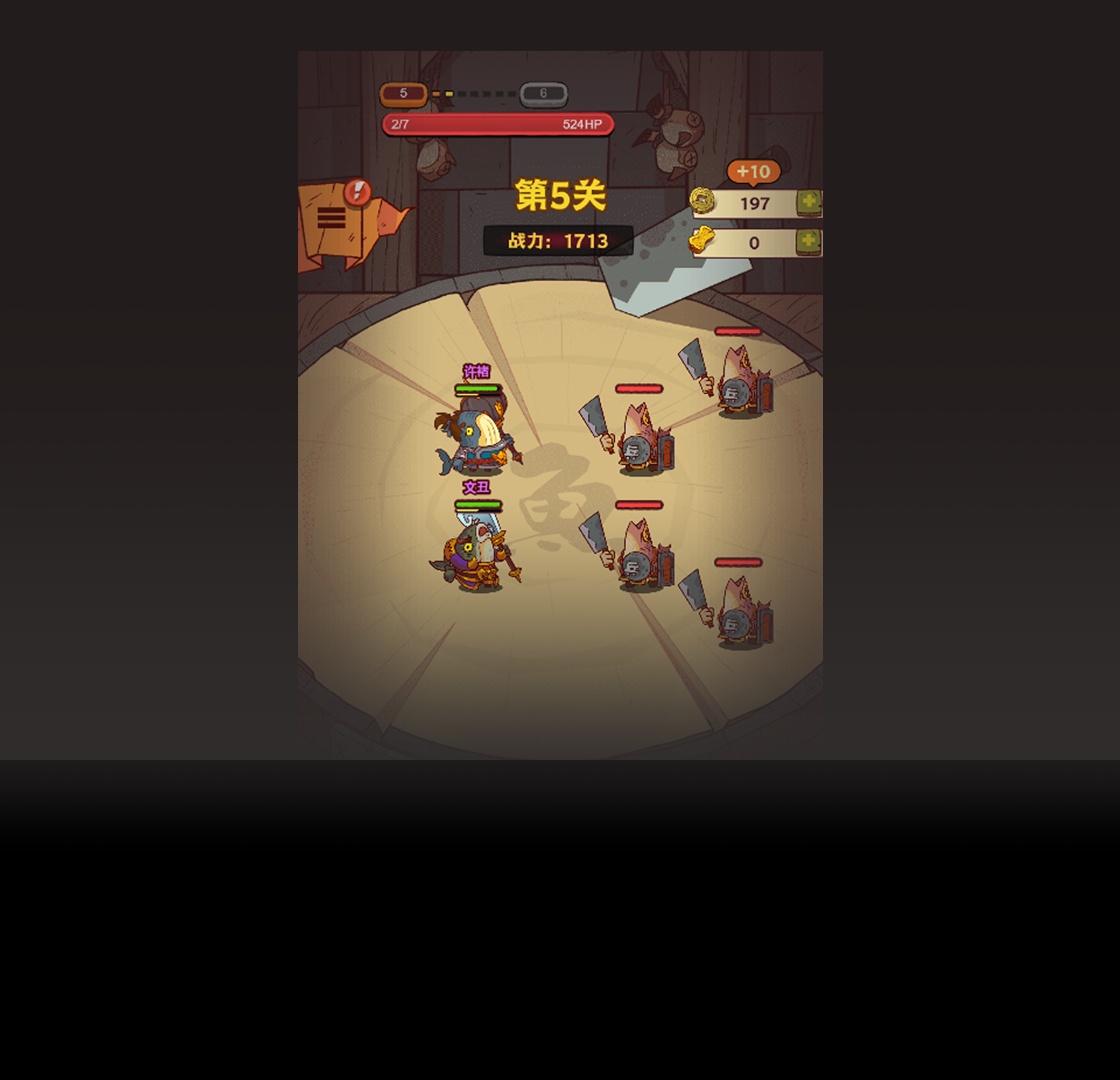 游戏采用了q版卡通的画风设计,将三国人物以咸鱼的形象呈现,让人眼前一亮。