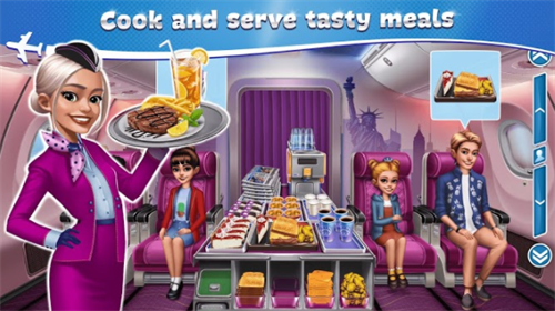 2、烹饪美味的餐点和甜点,并在这个免费的高度上瘾的时间管理烹饪游戏中将其用于商业航班;