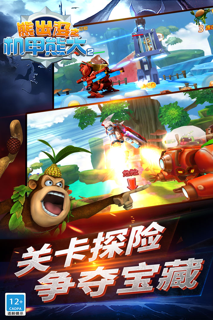 《熊出没机甲熊大2》将酷炫机甲与熊出没世界完美结合,创造了一个宏大的机甲冒险世界。多样化的冒险关卡让玩家在战斗中拥有高自由度的选择,既可以选择怒战BOSS挑战极限,又可以冒险闯关夺取宝藏,更多玩法还等你亲自体验!