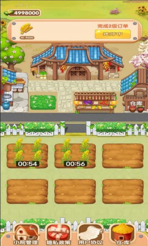 农村快乐小院是一款模拟经营类的手机游戏,在游戏中, 玩家们将会去经营一座农场,玩家们可以自由的种植游戏中的各种农作物,玩家们获得一定的收益之后也可以选择去扩建自己的农场,让自己可以解锁更多的物品,这款游戏的玩法有着较高的自由度,玩家们可以在游戏中自由的决定农场的发展方向。