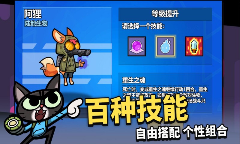 1、回合制策略战斗,对抗独特风格的怪物,巧妙搭配大量随机技能,利用地形、古文明芯片,以弱胜强击败敌人;
