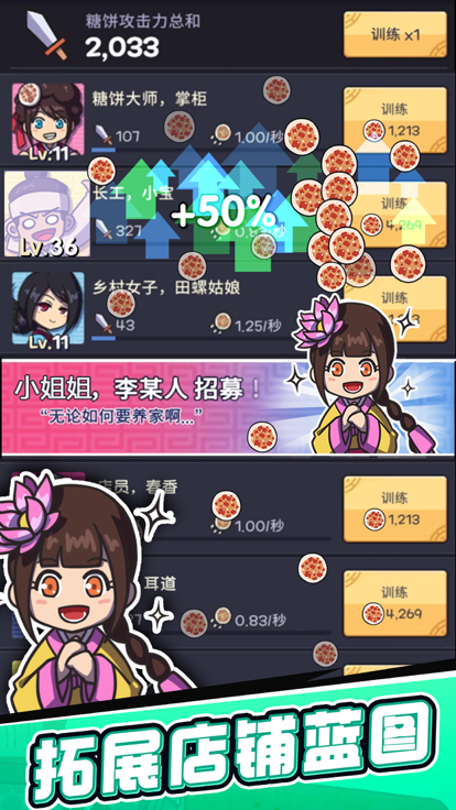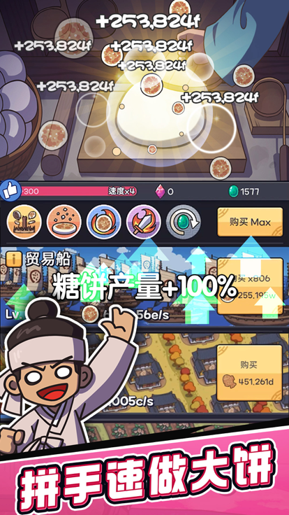 4.升级系统:通过完成任务和赚取金币,玩家可以升级自己的设备和技能,从而提高工作效率和制作出更美味的糖饼。
