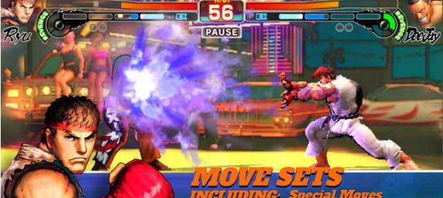 街头霸王4是一款非常出色的手机格斗游戏,它以全3D画面技术、多种角色选择、极致流畅的动作等特点,为玩家带来了更加完美的游戏体验。