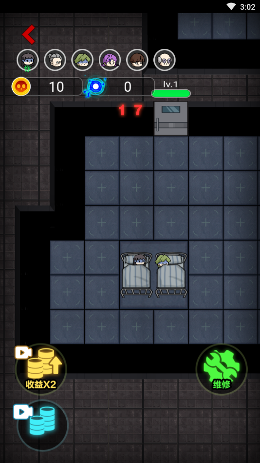 3、升级炮塔提高你的战力,不断消灭凶鬼保护宿舍中的人类。