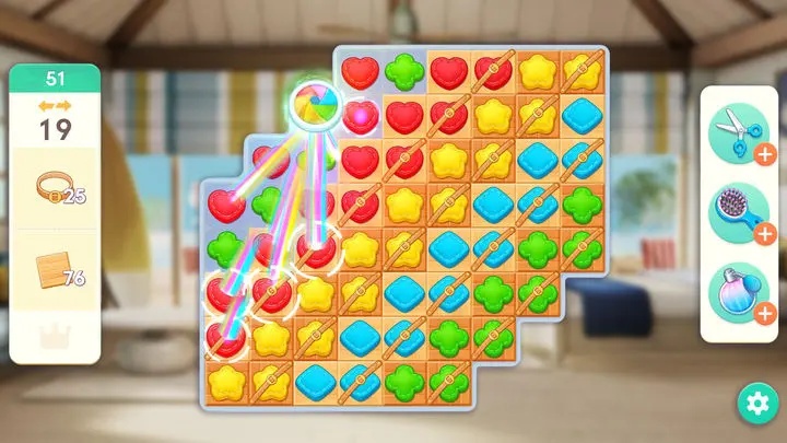 休闲益智:十分休闲的玩法玩家们可以体验到,三消玩法很有趣的,随时打开就可以玩了;
