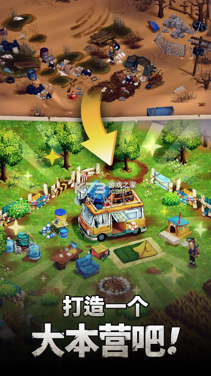 4.营地建设:通过合并和升级不同的方块和建筑物,玩家可以创建一个安全的居住地,并充实它以满足生存的需求,比如粮食产出、水源蓄积、防御设施等等。