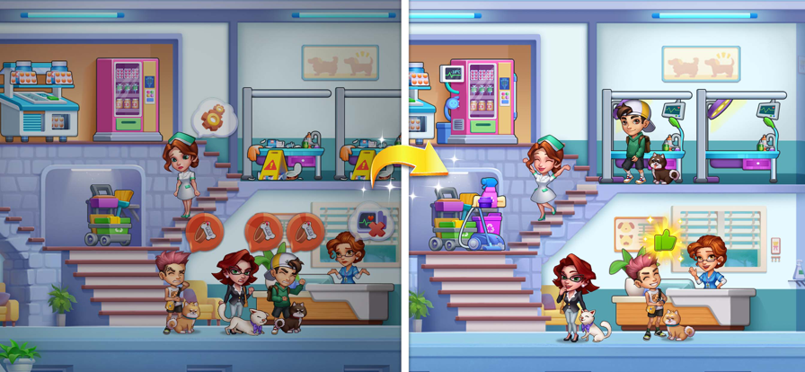 高智商大咖宠物医院这款模拟经营手游的核心玩法是经营宠物医院。作为玩家,你将扮演一位宠物医院的院长,在高智商大咖宠物医院中文版中接待不同类型的宠物并为它们提供治疗。通过升级和改造你的医院设施,你可以接待更多的宠物并提高你的医疗水平。此外,游戏还提供了解锁不同道具的机会,这些道具可以帮助你提升医疗水平并更好地照顾宠物,快来高智商大咖宠物医院IOS版下载试试看吧。
