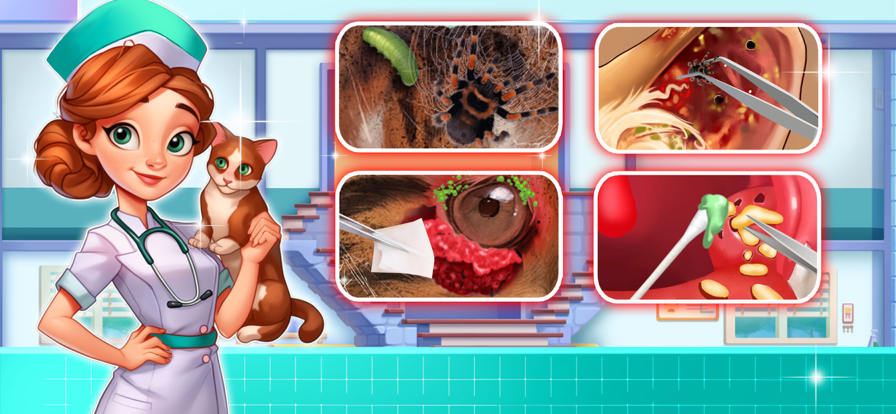 3. 玩家可以持续治疗他们的宠物,提高他们的医疗技能,进行更复杂的手术,并解锁更多的医疗设备和药物。