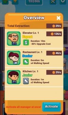 2、招募更多员工协助,快速装卸菜品,赚取利润;