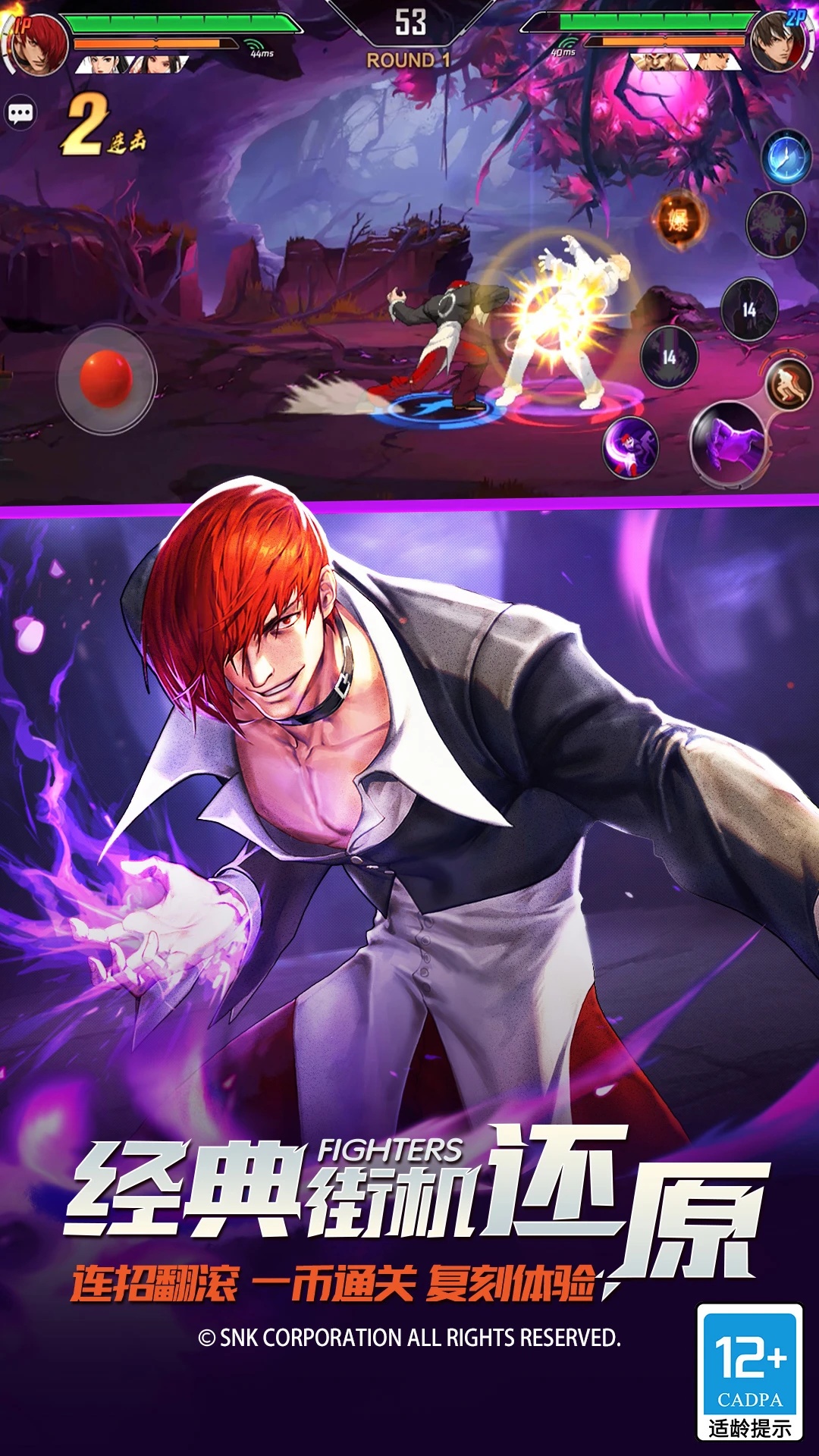 拳皇命运是由腾讯游戏独家代理发行,银汉游戏倾力打造的SNK正版授权拳皇格斗手游!拳皇经典焕新登场,格斗之魂永不熄灭!人气格斗家强势云集,打造KOF公平竞技,创新3V3多人对战,再现街机刺激闯关,体验百分百热血真格斗!