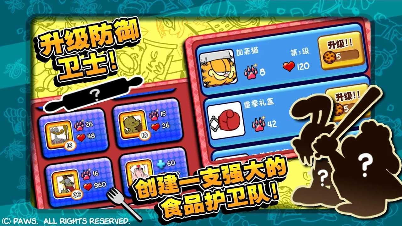 加菲猫总动员是一款非常有趣的休闲益智游戏,加菲猫游戏玩法丰富,同时技能体系完善,与其他酷炫的猫组队,配合最新的动画改编,加菲猫变得更加愚 蠢但仍然很有精神,击败敌人,距离会自动投掷叉子,此外,攻击动作会自动进行,可以说是无所不能,当加菲猫的攻击攻击除了近距离近战外,在未来未知的外星生物入侵地球时,加菲猫迷们,快来下载体验吧!