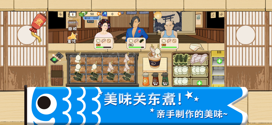 《关东煮》是一款超级有趣的模拟烹饪游戏。在游戏中,玩家将经营一家关东料理小吃店,用各种食材制作美味的关东料理。游戏关卡设计精美,欢迎喜欢的朋友下载试用!