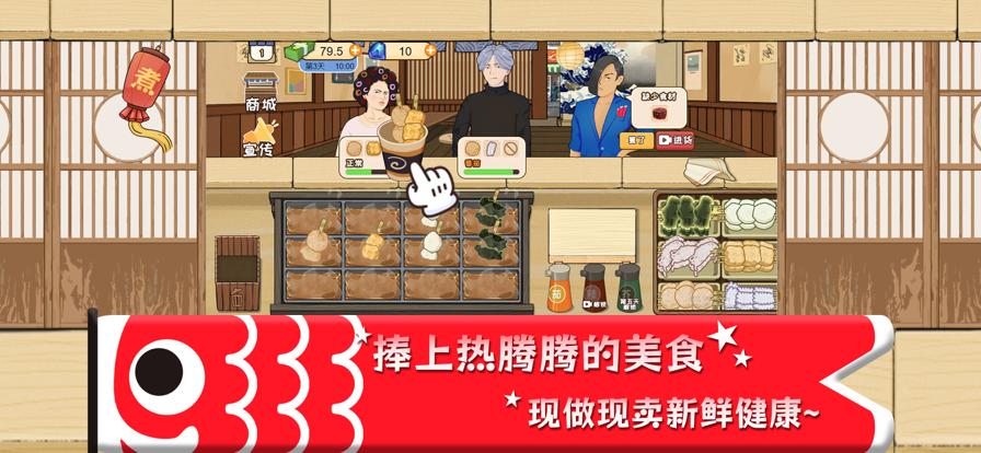 4. 《关东煮》游戏的视觉设计简洁美观,伴随着欢快的音乐,带给你身临其境的游戏体验。