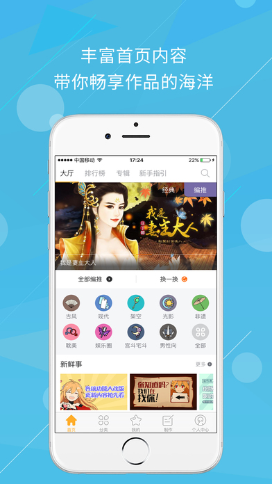 2、百款作品,任君选择;拥有3000万用户,人人可成为作者。