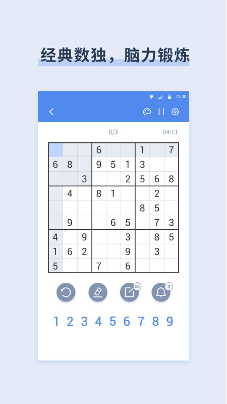 1、经典的数独玩法,玩家需要在9x9的格子中填充数字,遵循数独规则;
