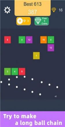 1、通过滑动屏幕控制弹球的发射方向,让弹球精准撞击砖块,击碎尽可能多的目标;