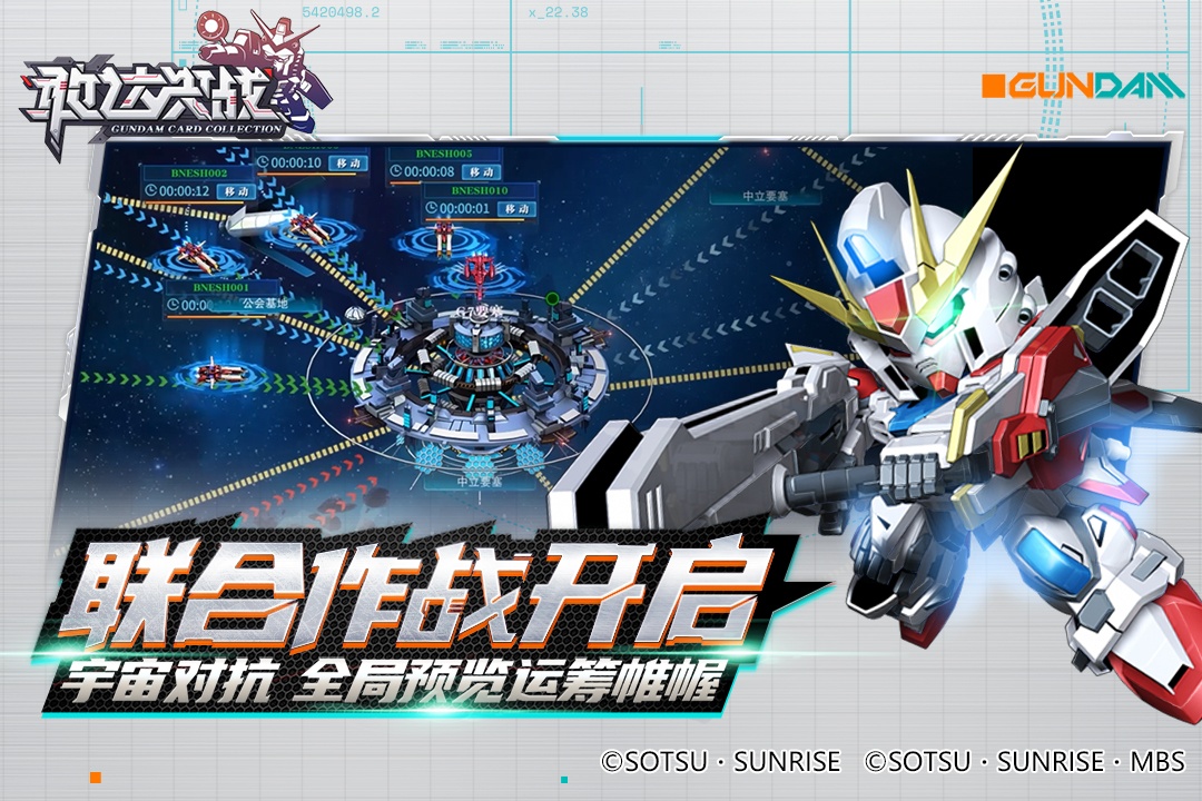 敢达迷们翘首以盼,中国大陆首款正版授权敢达题材手游《敢达决战》正式上线! 《敢达决战》是中国大陆首款正版授权敢达题材手游,历代敢达机体机师大集结。殖民星争夺、星际远征、机师挑战,多种策略玩法,尽力为玩家还原一个真实而经典的敢达世界。每一台主战机体都有独特动作和酷炫大招,配合专属队长技合体技,弹指间逆转战场形势。升级进化,机师培养,打造一个游戏内的强力机动战士部队。 飞翔吧,敢达,向着银河飞翔吧