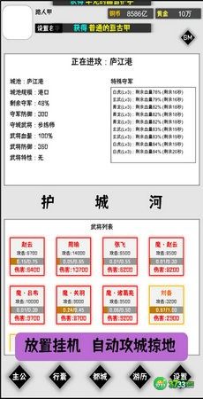 一款休闲的三国模拟游戏,很多厉害的武将,都需要你合理的战斗决斗,培养强大的武将角色,组建新的队伍,开始血腥的进攻。