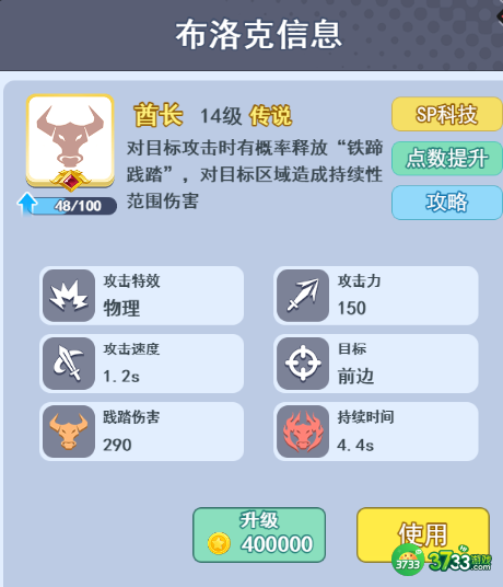 值得一提的是酋长的“铁蹄践踏”是可以叠很多层的,而且点数越高“铁蹄践踏”的伤害就越高,因此酋长是很强的传说布洛克。前期召唤出了几个酋长后,几乎可以让小怪出不了门,后期搭配阿瑞斯等单体伤害很高的布洛克,有非常好的效果。