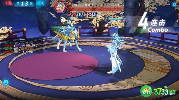 接着,神武月的血量也所剩无几了,我们用黄金圣天伊换上阵,对可兰的防御属性进行清除,然后羽月使用一招烧伤加技能,就可以直接搞定了。