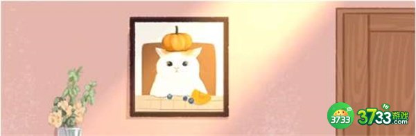 3、最后将小猫照片挂到墙上就可以了。