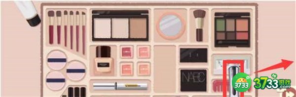 1、首先将每一个化妆品放到相应的格子当中。