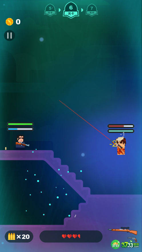 1、非常轻松简单的操作模式,轻轻点检一下就可以完成射击和跳跃等操作,体验极致简单的射击乐趣。